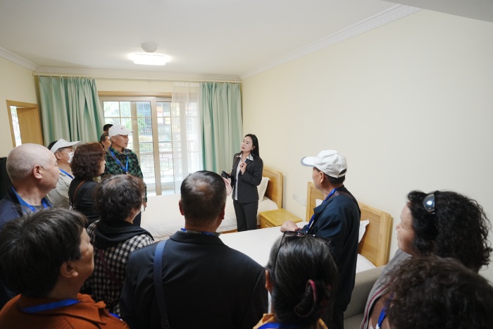 在漢中褒國康樂園養(yǎng)老社區(qū)負(fù)責(zé)人的引導(dǎo)下,旅居團(tuán)成員詳細(xì)了解了社區(qū)的總體規(guī)劃,實(shí)地參觀了公寓、餐廳、康樂園等,親身感受入住老人健康豐富地精神文化生活。通過參觀,旅居團(tuán)成員對(duì)社區(qū)高起點(diǎn)打造集生活照料、健康管理、醫(yī)療護(hù)理、大病康復(fù)、文化活動(dòng)于一體的醫(yī)養(yǎng)結(jié)合養(yǎng)老模式給予點(diǎn)贊。